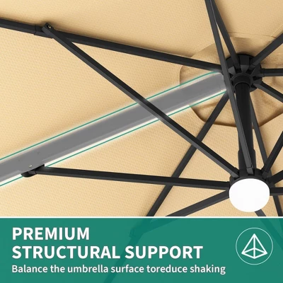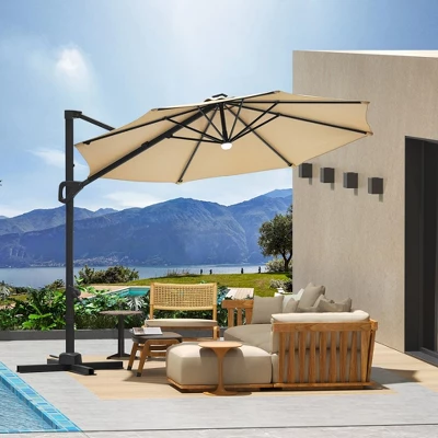 - Versatile deployment options accommodate multiple outdoor environments including residential patios, poolside areas, garden spaces, and commercial hospitality settings. The cantilever design permits flexible positioning without vertical pole obstruction, making it suitable for shading dining areas, lounge furniture, or hot tub installations