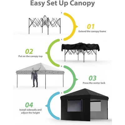 - One-Person Setup: This pop-up canopy features a one-button push setup and a height adjuster, allowing for easy installation and removal by a single person. You can have your canopy tent ready in just one minute.