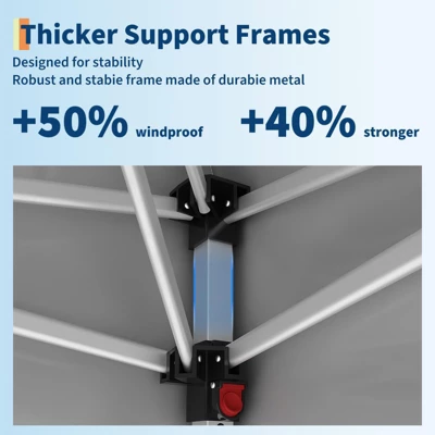 - 【Easy Installation】Designed with upgraded central lock system,simply press the central lock of the canopy tent to open or close it,and quickly complete the setup in a few seconds. no tools required.the canopy legs have 3 height adjustment holes to meet different occasions or needs