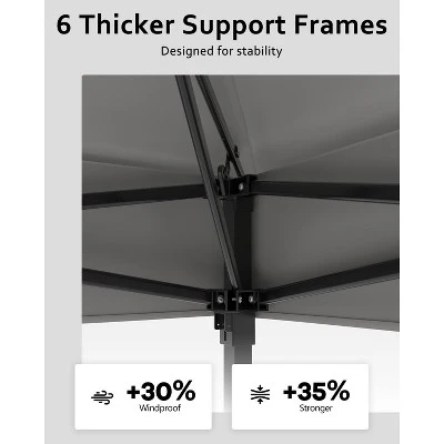 - 【Sturdy & Compact】- Built with a premium corrosion-resistant metal frame, this canopy ensures exceptional rust resistance and can withstand various weather conditions. Its stable triangular design, reinforced with six top ribs, effectively distributes pressure to enhance the outdoor canopy’s overall stability and wind resistance. Whether facing strong winds, heavy rain, or intense sunlight, this gazebo provides reliable protection.