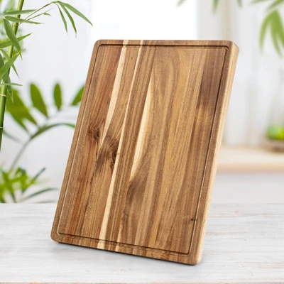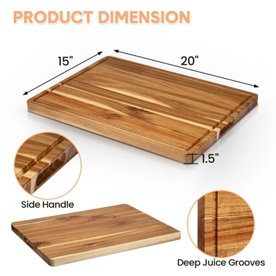 Ideal for home cooks and professional chefs alike, this substantial cutting surface handles all kitchen tasks while doubling as an attractive serving piece for gatherings. The thick acacia wood construction ensures decades of reliable use with proper maintenance.