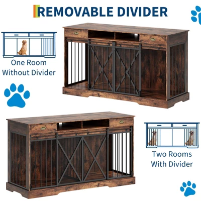 - Multi-Use Decorative Furniture: More than just a double dog crate, this stylish kennel furniture blends seamlessly with any decor. Use it as a TV stand, display stand, or side cabinet, discreetly providing your pets with a comfortable animMulti-Use Decorative Furniture: More than just a double dog crate, this stylish kennel furniture blends seamlessly with any decor. Use it as a TV stand, display stand, or side cabinet, discreetly providing your pets with a comfortable animal cage while elevating your living spaceal cage while elevating your living space