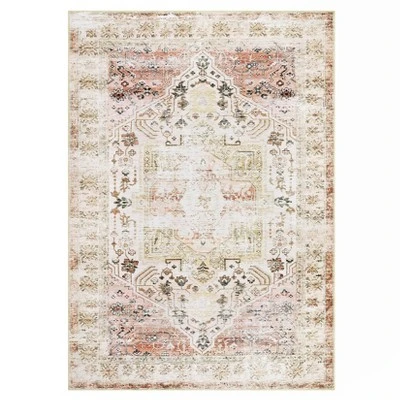 - [Timeless Distressed Design]This vintage -inspired rug showcases an artfully aged aesthetic, with muted tones and subtle wear patterns that evoke classic charm. The low-pile construction ensures easy furniture movement while maintaining a secure grip on hardwood, tile, or laminate floors. Its balanced weight prevents shifting without compromising the rug’s elegant drape.
