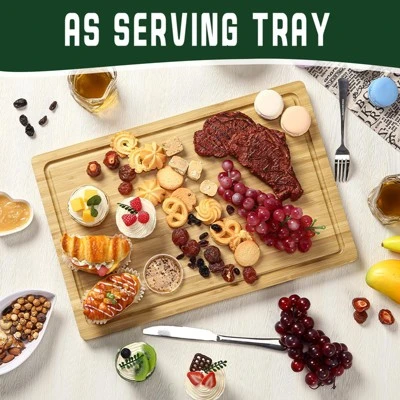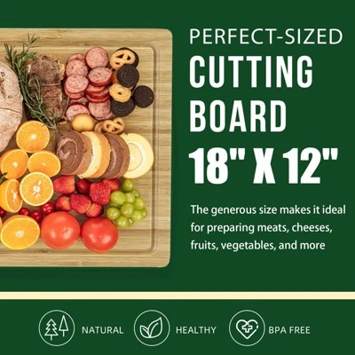 - [Efficient Design Features]: Bamboo’s natural properties make this cutting board ideal for chopping vegetables and slicing various foods. The deep juice grooves capture liquids, which can be used to create homemade glazes and gravies.