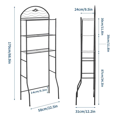 - Elegant Arched Detail: Featuring a graceful arch with wave and dolphin accents, this bathroom rack organizer blends function and decor. Bring a fresh, unique look to your bathroom while enjoying smart, vertical storage above the toilet