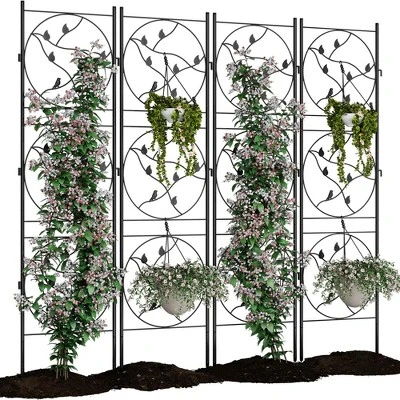 4-Pack 21″x72″ Black Metal Trellis for Climbing Plants – Heavy-Duty Rustproof Indoor/Outdoor Plant Support with Decorative ScrollworkBrand: TROPOWColor: Weatherproof BlackMaterial: Powder-Coated IronDimensions: 21″W x 72″H (each panel)Set Includes: 4 Trellises + Assembly Hardware?? 5-Star Garden Solution1?? Versatile Plant Support System? Accommodates roses, ivy, tomatoes & flowering vines? Ideal for gardens, patios & indoor houseplants? Promotes vertical growth for healthier plants2?? Patented Tool-Free Assembly? Connects in 5 minutes (no tools required)? Spiked legs anchor securely in soil/pots? Modular design allows multiple configurations3?? Elegant Art Deco Design? Intricate scrollwork enhances outdoor d¨¦cor? Timeless black finish complements any style? Creates beautiful living garden walls4?? Industrial-Grade Durability? Heavy-gauge iron construction (1.2mm thickness)? Weatherproof powder coating (UV/rust resistant)? Supports mature climbing plants season after season5?? Space-Saving Vertical Garden? Maximizes small balconies & urban gardens? Improves air circulation & sun exposure? Prevents ground crowding for 30% better yields?? Technical Specifications? Frame: 0.47″ thick iron bars? Coating: Epoxy powder finish (scratch-resistant)? Weight Capacity: 25 lbs per trellis? Set Weight: 18.14 lbs total? Footprint: 21″ base width (narrow-space friendly)