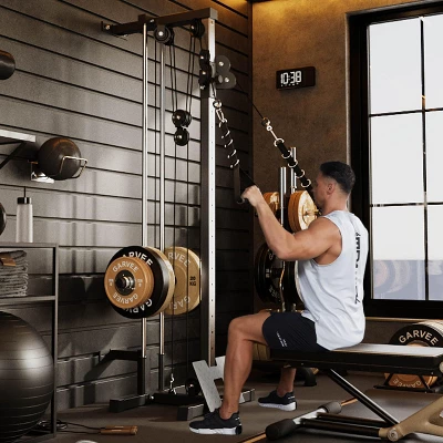 - 【Cost Reduction of 65%】Cable machine, integrating functions such as rope pulling machine, seated rowing machine, cable crossing machine, bicep curling machine, single arm cable rowing machine, etc. The lat pulldown machine is equipped with a detachable sleeve, suitable for 1 inch/2 inch weight plates. The free accessories include two D-ring handles which allow you to complete 99% of wired exercises (no additional purchase required)