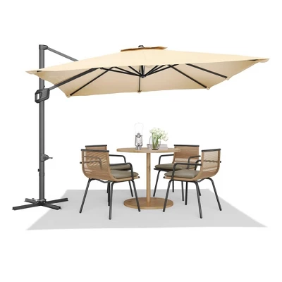 Cantilever Patio Umbrella 10x10ft Large Rectangle Umbrella Outdoor Market Umbrellas 360 Rotation Offset Hanging Outdoor Shade for Patio Deck Pool Backyard360¡ã Adjustable Cantilever Umbrella ¨C Durable, Stable & VersatileThis heavy-duty patio umbrella features seamless 360¡ã rotation and instant tilt adjustment (0¡ã¨C360¡ã) via a foot-pedal brake and ergonomic trigger system, delivering precise shade control.Built with rustproof aluminum and weather-resistant Oxford fabric (50+), it withstands sun, rain, and wind.The reinforced cross base ensures stability when paired with a 100+ lb weighted stand (sold separately).Perfect for pools, decks, gardens, or patios, its freestanding design adapts to any space.Always use with a weighted base for safety.