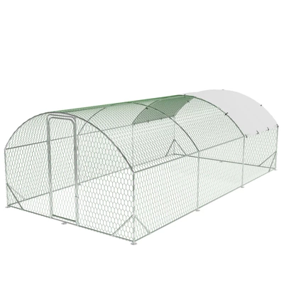 1.Durable Galvanized Steel Construction for All-Weather Use This large chicken coop features a robust steel pipe frame treated with advanced galvanizing technology, ensuring superior rust resistance and long-term durability against the elements¡ªrain, sun, wind, and snow. The sturdy build provides a secure, weatherproof living space, making it ideal for protecting chickens, ducks, birds, rabbits, and other small animals year-round. Its reinforced structure stands up to daily wear, ensuring your pets stay safe and comfortable in any outdoor conditions. 2.Spacious, Well-Ventilated Interior with Easy Access Designed to accommodate 15-21 chickens (or other small to medium animals), the coop offers ample room for movement, play, and rest¡ªcritical for animal well-being. The interior is highly ventilated, promoting fresh airflow to prevent moisture buildup and keep occupants healthy. It includes a large main door and convenient access points, making daily tasks like cleaning, feeding, and checking on your animals effortless. The thoughtful layout ensures you can maintain the coop with minimal hassle. 3.Versatile Enclosure for Multiple Small Animals Beyond chickens and hens, this metal cage serves as a versatile playpen for a range of pets: ducks, rabbits, cats, small dogs, sheep, birds, and even land turtles. Its spacious design provides enough room for play, exercise, and rest, adapting to the needs of various small to medium-sized animals. Whether you¡¯re raising poultry, housing rabbits, or creating a safe outdoor space for other pets, this enclosure offers flexibility for diverse pet care needs. 4.UV-Resistant & Waterproof PE Cover for Protection Equipped with a durable PE tarpaulin cover, the coop shields animals from harsh sunlight (with anti-UV properties) and rain (waterproof design). The cover¡¯s sloped roof ensures efficient water drainage, preventing puddles and moisture buildup inside. This protective layer creates a comfortable microclimate, keeping your pets cool in summer and sheltered from rain, ensuring their safety and comfort in all seasons. 5.Easy Installation with Improved Design Designed for user convenience, the coop comes with straightforward instructions and improved pole connections, simplifying assembly and saving time. Even those with limited DIY experience can set it up hassle-free. The 4 corner reinforcement ribs add stability to the structure, ensuring a sturdy build once assembled. This user-friendly design enhances satisfaction, letting you focus on enjoying your pets rather than struggling with complex setup.