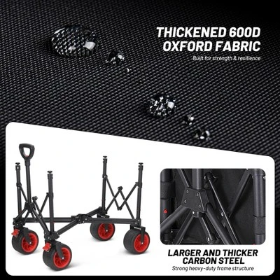 - 【Extra Large Capacity】The unfolded size of the wagon is 42 inches x 22 inches x 38 inches, providing 260L capacity, with cup holders and side pockets, which is convenient for carrying a large number of items, suitable for scenarios such as family outings, beach activities and camping.