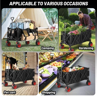 Collapsible Wagon Cart, 400LBS Capacity Foldable Utility Wagon with All-Terrain Wheels – Heavy Duty Shopping Cart with Adjustable Handle & Cup HolderKey FeaturesHeavy-Duty 400LBS Capacity
