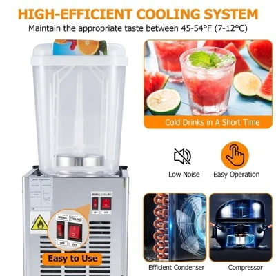 - 【Efficient Temperature Control 】Maintaining the ideal beverage temperature is critical for customer satisfaction, and this commercial beverage dispenser excels in achieving that goal. With an efficient evaporator tray, it optimizes cooling performance, even at lower volumes of beverage.