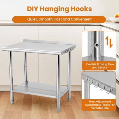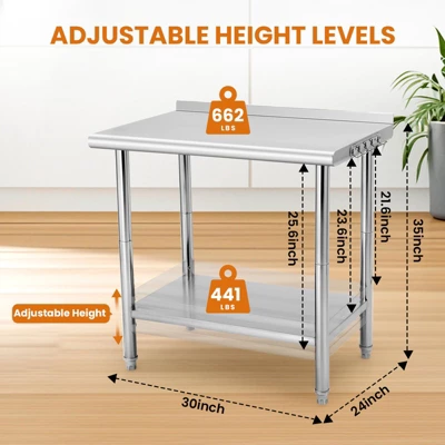 - Sturdy & Durable Stainless Steel Table:Crafted from high-quality stainless steel, this table offers exceptional durability and resistance to rust, corrosion, and stains, making it ideal for home kitchens, restaurants, garages, and outdoor use.