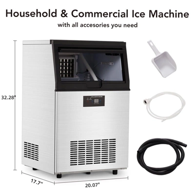 Commercial Ice Maker 90lb/24H – NSF Stainless Steel Undercounter Ice Machine with 30lb StorageProduct Description:The TROPOW Commercial Undercounter Ice Maker delivers professional-grade ice production with 90 lbs daily output, designed for bars, restaurants, and commercial kitchens. Featuring NSF-certified 304 stainless steel construction, 30 lb storage capacity, and adjustable ice cube sizes, this unit combines industrial durability with smart functionality.Key Features:? High-Capacity Production ¨C Generates 90 lbs of ice per day (4x8mm cylinder cubes)