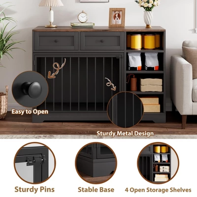 - Multi-Purpose Use – This large dog crate provides a spacious and comfortable space for dogs, with 2 drawers and 4 storage shelves it can also be used as a storage cabinet, end table, and nightstand in the living room and bedroom. Exquisite design styles can easily match a variety of home styles.