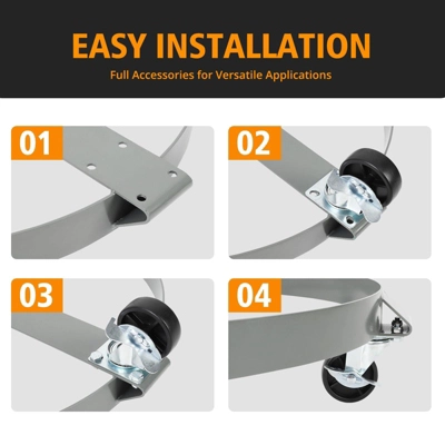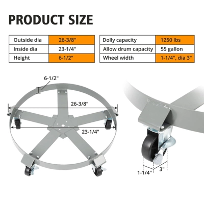- Five-wheel stable design, flexible load-bearing:Traditional four-wheeled carts tend to tilt? This five-wheeled barrel cart uses a triangular support structure, 3 fixed wheels and 2 brake wheels, which makes the force more evenly distributed and can bear up to 500kg! The central universal wheel and side wheel design makes it easy to turn in narrow roads, and it can be flexibly moved between warehouses, workshops, and construction sites!