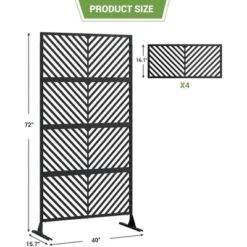 72″ Metal Privacy Screen for Patio, Heavy-Duty Outdoor Room Divider – Rustproof Black Fence PanelProduct Description:Instant Patio Privacy & Style