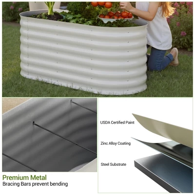 Title: Metal Raised Garden Bed, Elevated Outdoor Planter Box – Durable Galvanized Steel for Vegetables, Herbs & FlowersGalvanized Steel Construction: Rust-Resistant & Weatherproof for Year-Round UseThis raised garden bed is crafted from high-quality galvanized steel, a material renowned for its exceptional durability and rust resistance. The galvanization process coats the steel with a protective layer that shields it from rain, snow, humidity, and UV rays—preventing corrosion even when exposed to harsh outdoor conditions season after season. Unlike wooden planters that rot, warp, or attract pests (like termites) over time, or plastic planters that crack in extreme heat or cold, the galvanized steel build maintains its structural integrity for years. It’s sturdy enough to hold heavy soil and mature plants without bowing or shifting, making it a long-lasting investment for both beginner and experienced gardeners.Spacious, Deep Growing Area: Ideal for Robust Root Development & High YieldsDesigned with an expansive layout and generous depth, this planter box provides ample room for plants to thrive. The spacious surface area lets you grow multiple varieties side by side—mix vegetables (like tomatoes, carrots, or lettuce), herbs (basil, rosemary, mint), and flowers (marigolds, petunias) in one convenient spot, perfect for small backyards, patios, or balconies where space is limited. The deep soil bed is a key advantage: it allows roots to spread freely, access more nutrients and moisture, and grow stronger—resulting in healthier plants and higher yields. Unlike shallow planters that restrict root growth (leading to stunted plants), this elevated bed supports full plant development, even for root-heavy crops like potatoes or peppers.Elevated Design: Improves Drainage, Protects Soil & Deters PestsThe elevated structure of this garden bed solves common gardening challenges while protecting your plants. First, it enhances soil drainage: excess water drains away quickly through the base (or gaps in the steel, depending on design), preventing waterlogging and root rot—critical for plants that thrive in well-drained soil (like herbs or succulents). Second, it minimizes soil compaction: since you don’t step on the soil (as you would with in-ground gardens), the soil stays loose and aerated, allowing roots to breathe and absorb nutrients more easily. Third, it deters common garden pests: the elevated height keeps soil out of reach of burrowing animals (like gophers, rabbits, or mice) and reduces the risk of slugs or snails climbing up—protecting your crops without the need for harsh pesticides.Versatile Placement: Adapts to Backyards, Patios, Balconies & MoreThis planter box is designed to fit seamlessly into any outdoor space, making it incredibly versatile. Its compact yet roomy design works for:Backyards: Line it along a fence or place it as a focal point in your lawn to create a dedicated vegetable or flower garden.Patios/Decks: Set it on a level surface to grow fresh herbs or vegetables within arm’s reach of your kitchen—perfect for cooking with fresh ingredients.Balconies: Its elevated design prevents soil from staining balcony floors, and its size fits most standard balcony dimensions, turning a small outdoor spot into a mini garden.The modern, sleek metal appearance also adds visual appeal: it complements contemporary outdoor decor, industrial-style patios, or cozy cottage gardens, blending functionality with aesthetics.Tool-Free Easy Assembly & Low-Maintenance UpkeepWhether you’re new to gardening or short on time, this raised bed is designed for hassle-free use. Assembly is straightforward: most models come with pre-cut, pre-drilled parts and simple instructions—no specialized tools or advanced DIY skills required. You can have it set up and ready to fill with soil in 30 minutes or less. Maintenance is equally easy: the galvanized steel surface wipes clean with a damp cloth to remove dirt or debris, and there’s no need to stain, seal, or replace parts (unlike wooden planters). At the end of the season, simply empty the soil (or cover it for winter) and store the bed (if needed)—its durable construction means it’s ready to use again next year with minimal prep.
