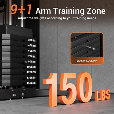 - 150 lbs Adjustable Resistance System: Maximize your training potential with a versatile 9+1 weight stack, delivering up to 150 lbs of customizable resistance. Perfect for strength gains, endurance challenges, or targeted muscle sculpting, this system lets you intuitively adapt resistance levels—ensuring every rep aligns with your evolving fitness journey. Unlock precision control for heavy lifts, dynamic circuits, or progressive overload, all in one pin-selector setup.