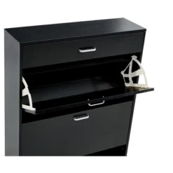 Shoe Cabinet With 2 Flip Drawers, Freestanding Entryway Shoe Storage Organizer, Narrow Rack Cabinet