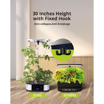 - 12 PODS AND ADJUSTABLE HEIGHT: Grow up to 12 plants at a time and adjust the height of the lighting section of the hydroponic growing system for plants in different stages of growth. Up to 30 inches.