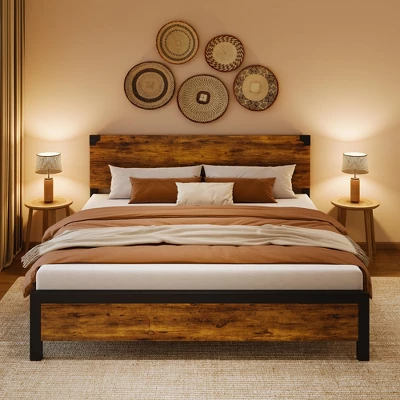 - Vintage Headboard and Footboard: The blend of vintage MDF board and a black metal frame offers a subtle industrial and rustic charm without being overly trendy. This retro king-size bed frame serves as a stylish finishing touch for your bedroom, complementing a variety of decor styles.