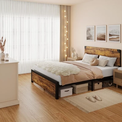 This platform bed combines functional storage with timeless rustic design, featuring a spacious under-bed area perfect for organizing seasonal clothing, extra bedding, shoes, or books ¨C helping maximize your bedroom space.