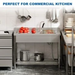 TROPOW Silver Stainless Steel Utility Sink – Freestanding Single Bowl For Kitchen/Laundry/Garage