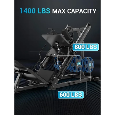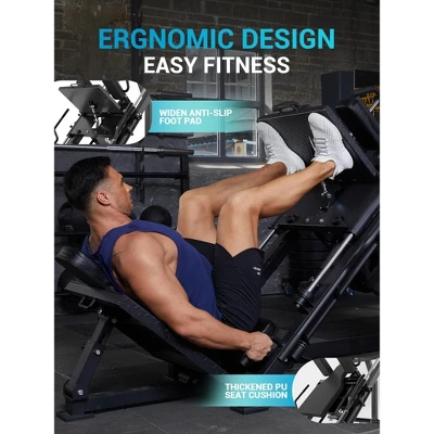 - 【2-in-1 Multifunctional Training Machine】This leg press machine combines leg press and hack squat functions, effectively working the quadriceps, hamstrings, glutes, and calves, while also enhancing cardiovascular fitness and burning fat. Equipped with four resistance band pegs to further expand load limits, it supports a maximum weight capacity of up to 1500 lbs. Whether you are a beginner or a professional, for home or commercial use, it’s easy to operate and meets all training needs.