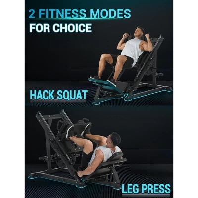 1.2-in-1 Multifunctional Design: Total Lower Body Training This combo machine seamlessly blends leg press and hack squat functions, targeting every major lower body muscle group¡ªquads, hamstrings, glutes, and calves¡ªfor a comprehensive workout. It goes beyond basic training: four built-in resistance band pegs let you add extra tension, expanding load limits to suit advanced users, while the 1500 lbs maximum weight capacity handles heavy lifts with ease. Whether you¡¯re a beginner sculpting legs or a pro chasing strength gains, it adapts to home or commercial use, making it a versatile centerpiece for any fitness space. It even boosts cardiovascular health and fat burn, turning lower body sessions into full-body calorie burners. 2.Heavy-Duty Steel Construction: Stability You Can TrustCrafted from 50¡Á50mm high-strength steel tubes (1.5mm thick), this machine is engineered for durability. Dual weight plate storage racks at the base lower the center of gravity, eliminating wobble during intense lifts, while solid metal guide rails paired with linear bearings ensure ultra-smooth, quiet motion¡ªno sticking or jarring mid-rep. Aluminum alloy handles add a premium touch, resisting wear even with daily use. From light warm-ups to max-effort sets, the robust frame stands firm, giving you confidence to push harder. 3.Ergonomic Comfort: Protected, Pain-Free WorkoutsDesigned with your body in mind, the machine features thick, high-density cushions for shoulders and back, wrapped in anti-slip, wear-resistant leather. These pads cradle your frame, reducing strain on shoulders, neck, back, and lumbar regions¡ªso you can focus on form, not discomfort. The material stays cool during long sessions and resists tearing, ensuring lasting comfort whether you¡¯re knocking out 10 reps or 50. It¡¯s not just about strength; it¡¯s about training smarter, with support that keeps you going. 4.Customizable Safety: Adapt to Every UserSafety meets flexibility with two reinforced safety locking points that secure the sled in place, preventing accidental drops. Four adjustable height limiters on both sides and a 4-position adjustable footplate let you tailor the machine to your height (from 5¡¯ to 6¡¯5¡±+) and training goals¡ªwhether you prefer deep squats or controlled leg presses. These adjustments ensure proper alignment, reducing injury risk and letting you train at high intensity without compromise. 5.Quick Mode Switch & Reliable SupportSwitching between leg press and hack squat modes takes seconds, thanks to a hydraulic handle and safety catch design¡ªno tools, no hassle. This saves time between exercises, keeping your workout momentum high. Shipped in three reinforced packages to minimize damage, the machine comes with a dedicated customer service team ready to assist within 24 hours for logistics or setup questions. From unboxing to your first workout, support is always nearby.