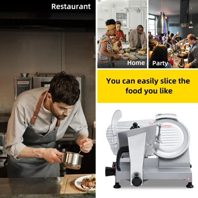 From home kitchens prepping family meals to delis, restaurants, and butcher shops serving customers, this slicer adapts to any environment. Its compact size fits on most countertops, while its powerful performance handles high-volume slicing. Whether you¡¯re making sandwiches, assembling platters, or prepping ingredients, it¡¯s a versatile tool that enhances efficiency and precision.