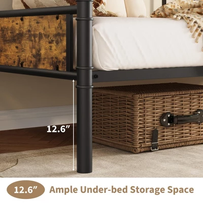 Twin Size Metal Daybed Frame with Wood-Grain Headboard