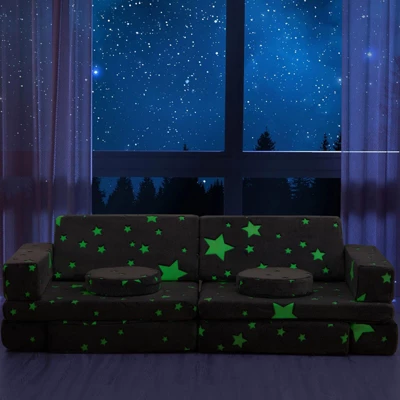Kids Modular Couch 12-Piece Set, Glow in The Dark Star Convertible Sofa for Playroom ¨C Toddler Play Furniture for Boys & Girls*Product Description:Magical Glow-in-the-Dark Play Couch for Imaginative Kids