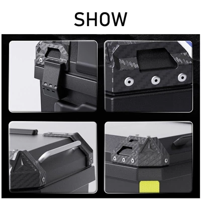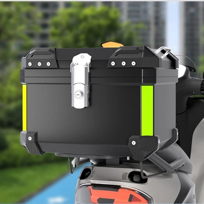Motorcycle Top Case 45L, Universal Waterproof Motorcycle Luggage BoxProduct Description:Upgrade your motorcycle’s storage capacity with this versatile 45L top case, designed for both daily commuting and extended touring adventures. Crafted from durable aluminum with a sleek black finish, this universal-fit top box offers exceptional weather protection and security for your valuables. The spacious interior comfortably stores two full-face helmets plus additional gear, while the integrated reflective strips enhance nighttime visibility for added safety. Featuring tool-free installation and a removable washable liner, this top case combines practical functionality with rider-friendly convenience.Key Features:1. Expanded 45L Storage CapacityGenerous interior space easily accommodates two full-face helmets, riding gear, and personal belongings. Ideal for commuters and tourers seeking substantial storage without compromising style or aerodynamics.2. Advanced Weather Protection SystemEngineered with fully sealed seams and a waterproof locking mechanism to keep contents dry in heavy rain, fog, or wet conditions. The reinforced construction ensures complete protection against moisture and dust.3. Safety-Enhanced Design FeaturesEquipped with 360¡ã reflective strips for improved nighttime visibility and anti-drop corner guards that protect against impacts and scratches during rides or accidental drops.4. Removable & Washable Interior LinerFeatures a shock-absorbing, detachable inner liner that can be easily removed for cleaning. Maintains fresh odor-free storage and protects delicate items from vibration damage.5. Universal Tool-Free InstallationCompatible with most motorcycles and scooters through quick-release mounting system. Simply align with your bike’s tail rack and secure without drilling or special tools ¨C installation takes seconds.Specifications:? Capacity: 45 Liters? Material: Aluminum? Color: Black? Weight: 4.9 kg? Mounting: Universal quick-release system? Special Features: Reflective strips, waterproof seal, removable liner? Interior: Shock-absorbing washable liner? Security: Integrated locking system? Compatibility: Fits most motorcycles and scooters? Dimensions: Approximately 45L volume capacity
