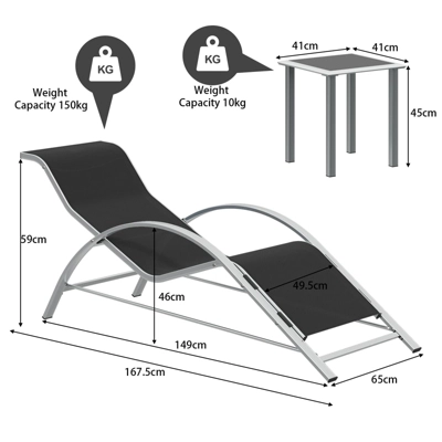 - 【Durable Aluminum Frame】 This outdoor chaise lounge chairs set of 3 features a weather-resistant aluminum frame with rust-proof properties, ensuring strong support that can withstand various outdoor environments, with a maximum weight capacity of up to 353 lbs.