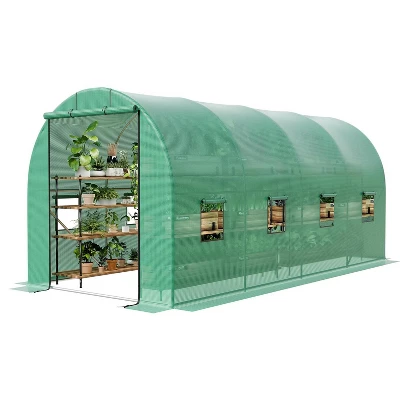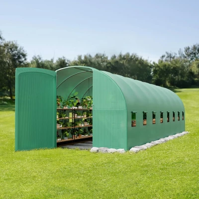 - 【 Adequate Space 】: 15 feet long x 7 feet wide x 7 feet high, with a planting area of 105 square feet. The commercial grade tunnel structure supports complete verticality and can accommodate 4-6 levels of plant racks. The column free design maximizes the use of space, suitable for growing tall crops such as tomatoes, and also facilitates the entry and exit of handcarts and gardening tools.