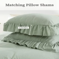 Ruffle Duvet Cover 3PCS Soft Washed Microfiber Vintage French Country Duvet Cover Set Sage