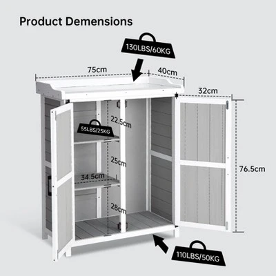 1.Galvanized Metal Tabletop: Durable, Waterproof & Spacious for Gardening Tasks This outdoor work station features a heavy-duty galvanized metal tabletop designed for outdoor resilience. It¡¯s fully waterproof¡ªrain, sprinklers, or spilled potting soil won¡¯t cause rust, warping, or water damage¡ªmaking cleanup a breeze (just wipe with a damp cloth or hose down lightly). Raised side rails line the table¡¯s edges, preventing small items (like seeds, pruning shears, or pots of seedlings) from sliding off during use. Measuring 29.5¡± x 15.7¡±, the tabletop offers ample space for potting plants, repotting succulents, or organizing gardening tools, and it supports up to 130 lbs¡ªstrong enough for a bag of potting mix, a watering can, and a stack of clay pots all at once. 2.2 Adjustable Removable Shelves: Flexible Storage for Tools & Supplies Customize your storage with two removable shelves that adapt to your needs. The shelves offer adjustable height settings, so you can raise them to fit tall items (like long-handled shovels, large planters, or a 5-gallon bucket of fertilizer) or lower them for smaller essentials (pruning saws, seed packets, or gardening gloves). Each shelf has a robust weight capacity: the upper single shelf holds up to 55 lbs (ideal for lightweight tools or bagged soil), while the sturdier bottom shelf supports 110 lbs (perfect for heavy items like a wheelbarrow accessory or a stack of ceramic pots). If you need extra floor space for large projects, simply remove the shelves temporarily¡ªflexibility that suits any gardening routine. 3.Sturdy Fir Wood Construction: Weather-Resistant for Year-Round Outdoor Use Crafted from high-quality fir wood, the cabinet and bench frame deliver exceptional stability and durability. Fir wood is naturally resistant to warping, cracking, and rot, even when exposed to harsh outdoor conditions (sun, rain, wind, or mild frost)¡ªunlike cheap particleboard or softwoods that break down quickly. The wood¡¯s solid structure ensures the work station stays wobble-free, even when you lean on it while potting or reach for heavy tools on the lower shelf. It¡¯s built to withstand years of regular use, making it a long-term investment for your backyard, patio, or lawn. 4.Easy Assembly with Clear Instructions & Dedicated Support You don¡¯t need advanced DIY skills to set up this outdoor storage cabinet¡ªeverything is designed for hassle-free assembly. It comes with detailed, illustrated instructions (no confusing technical jargon) and all necessary fittings (screws, brackets, washers) neatly packed and labeled. Most users can complete assembly in 1¨C2 hours with just a screwdriver. If you run into questions (e.g., missing parts, unclear steps), dedicated customer service is available to help¡ªno waiting for generic support. This stress-free setup means you can start using your potting bench and storage cabinet sooner. 5.Versatile 2-in-1 Design: Potting Table + Waterproof Storage Cabinet This piece works double duty as both a functional potting bench and a protective storage cabinet¡ªeliminating the need for separate furniture. Use the galvanized tabletop for daily gardening tasks (mixing soil, planting seeds, pruning plants), then store all your supplies in the lower cabinet area to keep them organized and dry. The waterproof design protects tools, soil, and accessories from rain and humidity, preventing rust on metal tools or mold on bagged soil. It¡¯s perfect for any outdoor space: place it in your backyard near garden beds, on the patio for easy access, or by the lawn for storing lawn care tools (like a rake or hedge trimmer). This versatility makes it a must-have for gardeners who value both functionality and space-saving design.