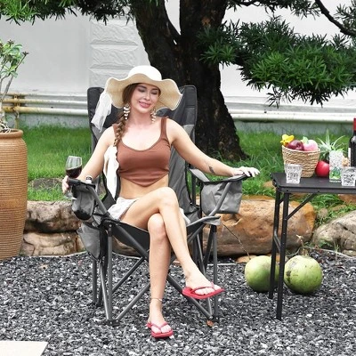 - 【Extra Functional Design】Stay organized with side mesh pockets, a cooler bag, wine glass holder, and built-in bottle opener. This comfy camping chair has all the thoughtful extras to make your outdoor time more enjoyable and stress-free.