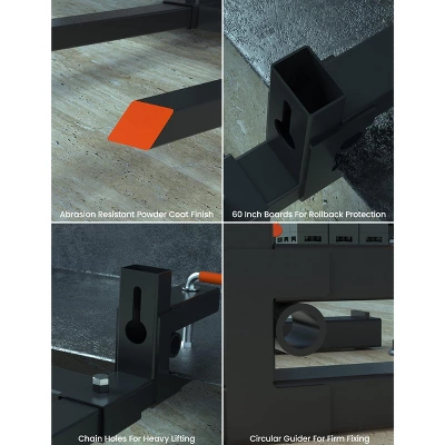 - Safety Features and Durable Materials: Constructed of coated welded steel. Durable and reliable. Use chain holes to ensure safe lifting of heavy loads. It is designed with thick rectangular tube walls. Rollback protection slots will keep you and your machine safe.