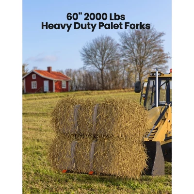 - Easy to install and versatile: Easy to install, just slide the forks onto the cutting edge of the bucket and clamp to lock. It can carry logs, lumber and firewood, move fence posts, hay bales, and clear debris and brush.