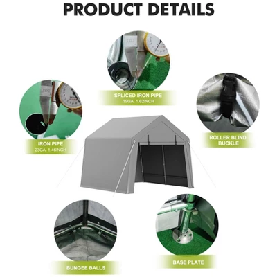 Heavy-Duty Portable Carport Shelter ¨C Waterproof Storage Shed with Zipper Doors for Motorcycles, Bikes & Tools Product Title: