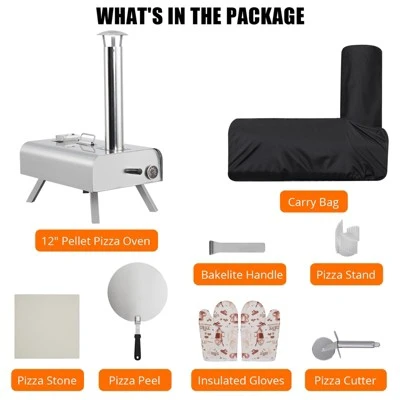 TROPOW 12″ Portable Wood Pellet Pizza Oven ¨C Outdoor Steel Pizza Maker with Stone & Accessories1?? Professional-Grade Performance? Reaches 700¡ãF in 20 minutes for authentic Neapolitan-style pizza? 12″ cordierite pizza stone ensures even 572¡ãF heat distribution? Convection heating system circulates heat for perfect crust2?? Premium Stainless Steel Build? SUS430 commercial-grade steel construction? Folding legs reduce storage size to 14¡Á21¡Á29″? Heat-resistant handles (up to 900¡ãF safe touch)3?? Multi-Fuel Cooking Flexibility? Works with wood pellets, chips, or charcoal? Adjustable air vents for flame control? Creates authentic wood-fired flavor profiles4?? Complete Pizza Kit? Includes peel tool, waterproof storage bag, and stone? 9lb lightweight design for camping/BBQs? Fits 12″ standard pizza pans5?? Effortless Setup? Tool-free assembly (folds in 60 seconds)? Easy ash cleanup system? Integrated temperature gauge?? Technical Specs? Dimensions: 14″W ¡Á 21″D ¡Á 29″H (folded)? Cooking Area: 12″ diameter? Weight: 9 lbs? Material: 2mm thick stainless steel?? Perfect For:¡ú Backyard pizza parties¡ú Camping/RV trips¡ú Food truck businesses??? Features? 3-year rust warranty? Heat-resistant storage bag? 15″ safety clearance zone
