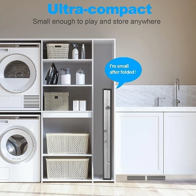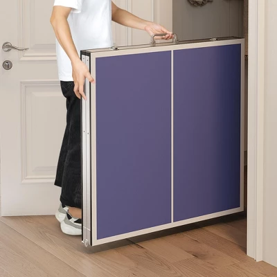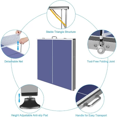 Professional Indoor Ping Pong Table with Playback Mode and Foldable Design – 12mm MDF Surface with WheelsProduct Description:Bring the excitement of competitive table tennis into your home with this professional-grade indoor ping pong table. Designed for both training and entertainment, it features a thick 12mm MDF surface for tournament-level bounce accuracy and responsive play. The innovative playback mode allows one side to be raised for solo practice, while the foldable design and built-in wheels enable easy storage and mobility. Supported by a rust-resistant aluminum frame and adjustable non-slip legs, this table offers durability, stability, and convenience—ideal for game rooms, offices, or recreational spaces.Key Features:🏓 Tournament-Level Playing SurfaceThe 12mm thick MDF top ensures consistent ball bounce and rebound performance, meeting official standards for recreational and competitive play. The blue finish reduces glare and enhances visibility during extended matches.🔄 Solo Playback Training ModeOne side of the table can be securely elevated to simulate opponent returns, allowing for effective solo practice sessions. Perfect for improving spins, slams, and footwork without a partner.🛡️ Durable and Corrosion-Resistant FrameThe sturdy aluminum frame offers long-lasting support while resisting rust and wear. Adjustable legs with rubber suction cups provide floor protection and prevent slipping during intense games.🧹 Space-Saving and PortableFolds compactly within seconds and features locking wheels for smooth, controlled movement. The dual safety locks keep the table securely in place whether open for play or closed for storage.🛠️ Quick Tool-Free AssemblyDesigned for hassle-free setup with all hardware and illustrated instructions included. No specialized tools are required, and customer support is available for assistance.Specifications:• Color: Blue• Playing Surface: 12mm MDF• Frame Material: Aluminum• Overall Dimensions: 180L x 90W x 93H cm• Weight: 24 kg• Features: Playback mode, foldable, locking wheels, adjustable legs• Ideal For: Home game rooms, offices, schools, clubs
