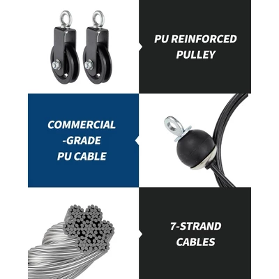- Professional-Grade Silent Operation: Features aircraft-grade 7-strand steel cables and precision 360° rotating pulleys for ultra-smooth, whisper-quiet performance. The textured anti-slip cable end ball and reinforced abrasion-resistant construction ensure longevity even during daily high-impact training sessions.