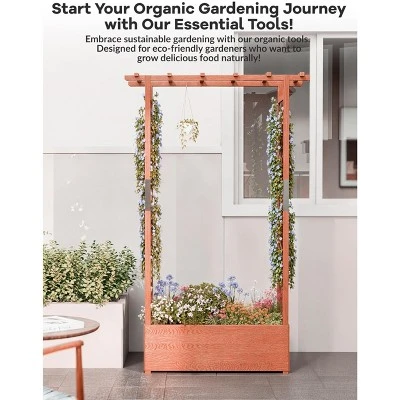 Raised Garden Bed with Trellis ¨C 45″ Elevated Planter Box for Climbing Plants, Flowers & Vines (Freestanding Design with Drainage Holes)Key Features:? All-in-One Gardening Solution ¨C Combines planter box, side trellises & hanging roof for vertical growth