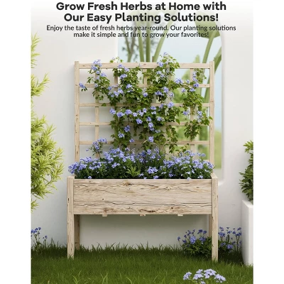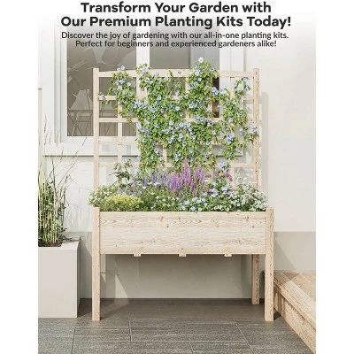 **Elevated Garden Planter Box with Trellis for Climbing Plants, Vegetables, and Flowers** Transform your gardening experience with this elegantly designed elevated planter box, perfect for growing a variety of climbing plants, vegetables, herbs, and flowers. Crafted from premium cedar wood, this planter combines functionality with aesthetic appeal, making it an ideal addition to any backyard, patio, or balcony. Its multi-tier design and integrated trellis provide ample space for vertical growth, while the raised structure ensures comfortable gardening without straining your back or knees. **Key Features:** 1. **Spacious Multi-Tier Design with Integrated Trellis** This planter offers generous growing space with its thoughtfully designed tiers, accommodating herbs, vegetables, and flowers effortlessly. The built-in trellis provides sturdy support for climbing plants such as beans, tomatoes, and ivy, encouraging healthy vertical growth. The deep planting beds allow robust root development, and the open framework ensures optimal sunlight exposure for all your plants. 2. **Durable and Weather-Resistant Cedar Construction** Built from high-quality cedar wood, this planter is naturally resistant to rot, insects, and moisture damage. The slatted base features multiple drainage holes to prevent waterlogging and root rot, while the gaps between boards promote airflow and accommodate wood expansion. Free from chemical treatments, it is a safe choice for organic gardening and built to withstand harsh weather conditions. 3. **Sturdy and Long-Lasting Build** Designed with thick cedar planks and reinforced corner joints, this planter can support heavy soil loads without warping or weakening. The natural oils in cedar wood repel pests and decay, ensuring greater durability compared to other materials. Elevated legs keep the structure stable and protect it from ground moisture, making it a reliable gardening solution year after year. 4. **Ergonomic Elevated Gardening Experience** The planter¡¯s raised height eliminates the need for bending, making it accessible for gardeners with mobility issues or those who prefer standing while tending to plants. The tall trellis helps keep ground pests away while improving air circulation around your plants. Additionally, the elevated design allows soil to warm faster in spring, giving heat-loving crops a longer growing season. 5. **Versatile and Stylish Outdoor Decor** With its natural cedar finish, this planter blends seamlessly into any garden or patio setting. Leave it unfinished for a rustic look that ages to a silvery patina, or customize it with paint or stain to match your outdoor d¨¦cor. Whether used for urban gardening, as a decorative feature, or for practical growing purposes, this planter offers both beauty and functionality. **Specifications:** – **Material:** Premium cedar wood – **Special Feature:** Drainage holes for optimal water management – **Style:** Garden planter with trellis – **Shape:** Rectangular – **Usage:** Outdoor – **Load Capacity:** Supports up to 400 lbs of soil – **Trellis Height:** Ideal for climbing plants – **Design:** Elevated with legs for easy access