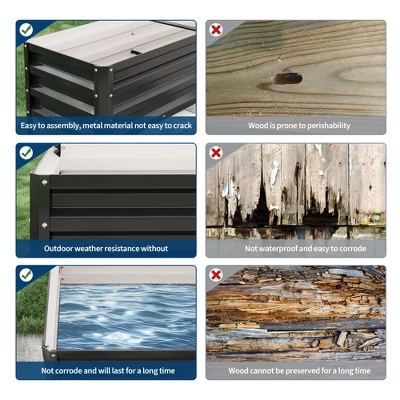 - INDUSTRIAL-GRADE STEEL CONSTRUCTION:Features 0.8mm powder-coated steel panels (rust-resistant!) with reinforced corners. Withstands soil pressure, extreme weather, and outlasts flimsy wooden beds by 5X.