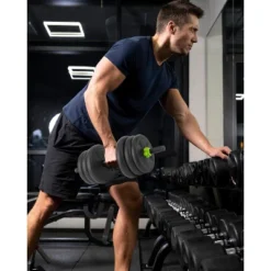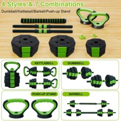 Adjustable Dumbbell Set With Iron Handle, 44lbs Weight Set, Green And Black, Octagon Head