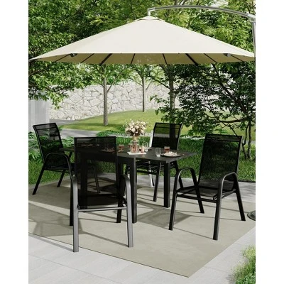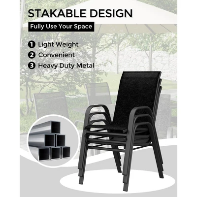 Easily stack the chairs when not in use to save space and keep your outdoor area neat and organized. This smart, compact design is ideal for patios, decks, balconies, and smaller outdoor spaces.Comfortable High-Back Seating with Textilene Fabric